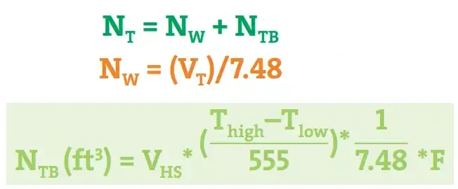 - NT = Total volume of nitrogen required per month (ft3)