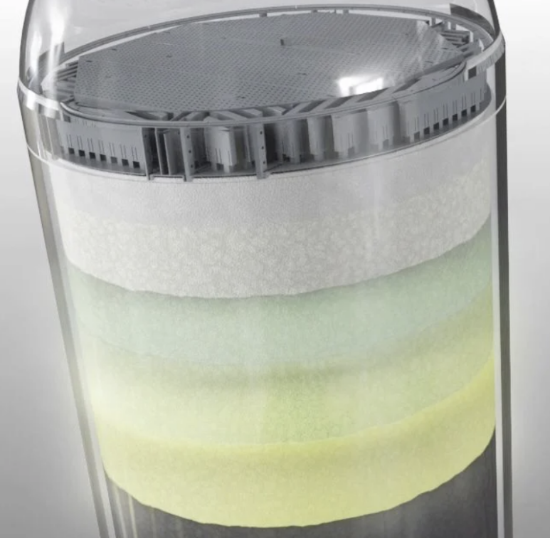 top layer는 inert 층으로서 주로 입자가 큰 이물질, scales, corrosion products, dust, inorganic particle들을 catching하고, 두번째 layer는 active grading으로서 mild activity하며 수첨 반응을 통해 올레핀이나 다이 올레핀과 같은 반응성이 매우 높은 물질을 포화시켜 제거한다. 세 번째 layer는 Arsenic, Silicon, organic metals을 제거하며 feed spec에 따라 추가적인 layer를 설치할 수 있다.