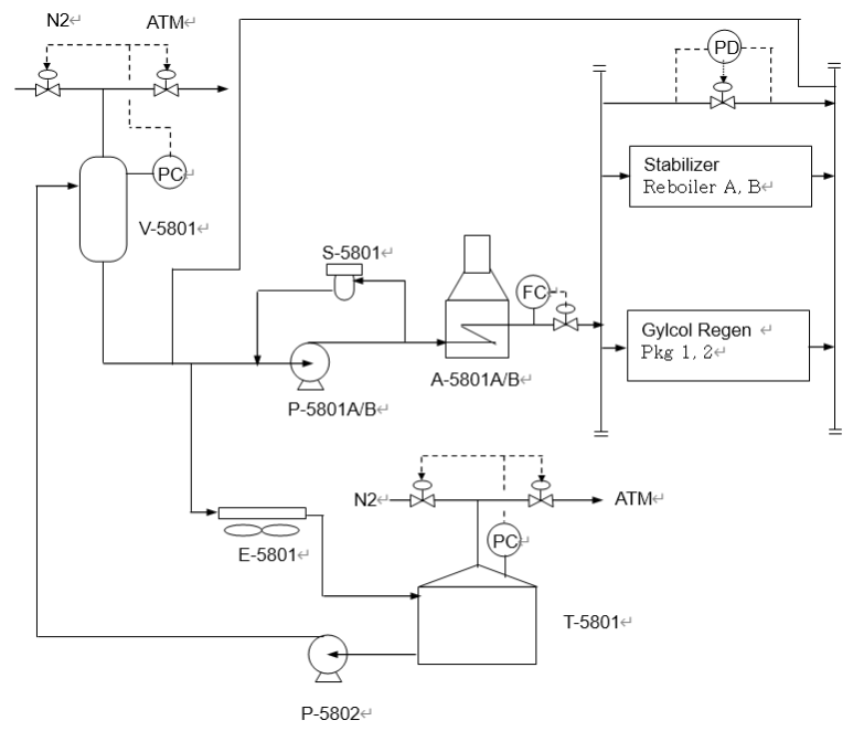 각 user로 개별 흐름은 공정 조건에 따라 유량제어, 온도제어, 수동제어일 수 있다. 만약 control valve나 orifice flowmeter가 설치된다면 보다 온도가 낮은 열교환기 후단에 설치한다.