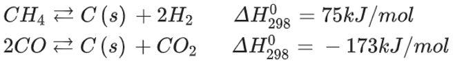 이 과정에서 메탄의 분해와 CO의 분해 (Boudouard reaction)에 의해 coke가 생성될 수 있다.