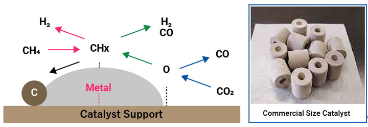 Dry reforming의 걸림돌이 CO의 불균화 및 메탄의 분해로 니켈 촉매에 탄소가 deposit되는 것이다. 아울러 dry reforming은 수소 생성이 충분치 않다는 것이다. 이를 극복하기 위해 스팀과 CO2가 원료로 사용되는 복합 개질반응을 적용하며, 이를 통해 CO2/H2O 비를 조정하여 메탄의 전환을 높이고 carbon deposit을 줄인다.