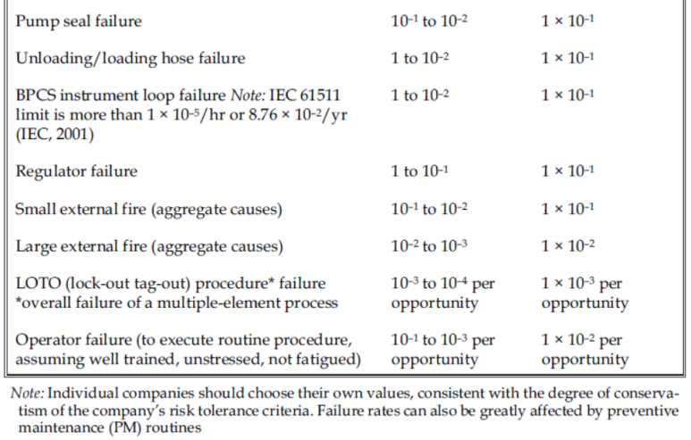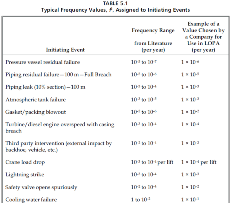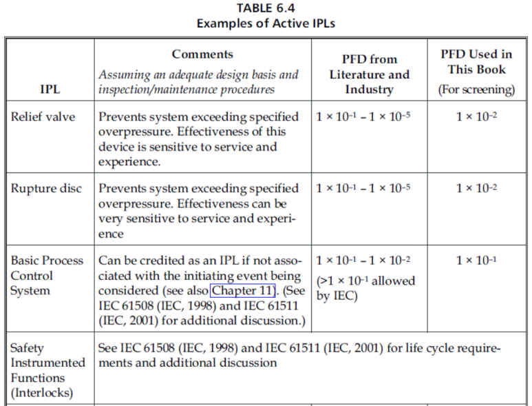 CCPS에서는 IE (Initiating Event)와 IPL (Independent Protection Layer)에 대한 기준 및 IE probability와 IPL의 PFD (Probability of Failure on Demand) 값을 제시하고 있다.