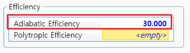 compressor model을 추가후, adiabatic efficiency를 30%로 define한다.