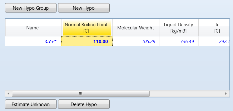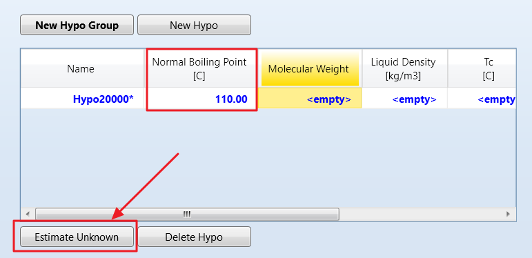 estimate unknown을 누르면, 프로그램이 나머지 물성치들을 estimation해준다.