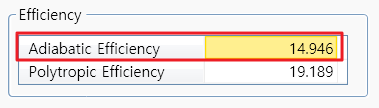 만약 outlet온도가 400도라면 이 때의 adiabatic efficiency는 아래와 같이 계산한다. 즉, efficiency를 삭제하고 outlet온도를 400C 입력한다.