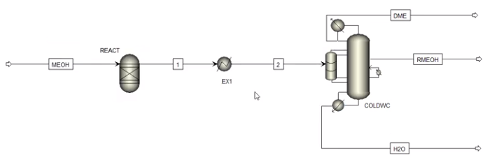아래 그림은 동일한 시스템이지만 rectifier와 afterwasher를 결합한 DWC이며 결과적으로 column 하나를 줄이고 rectifier로 보내는 afterwasher bottoms pump를 없앨 수 있다.