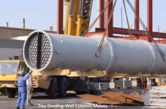 1990년대에 BASF에서 NMP를 이용한 BD 추출 공정에 DWC 기술을 적용 및 test를 수행하였다. 즉 classic type은 1,3-BD로부터 더 가볍고 더 무거운 성분들을 분리하는 것이고, 두번째 type은 2개의 column이 dividing wall을 이용하여 하나의 column으로 combine하였다.