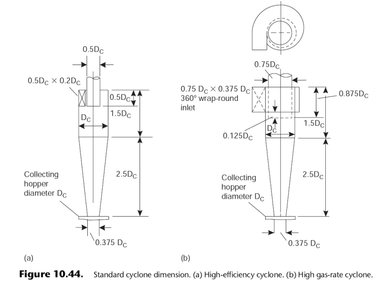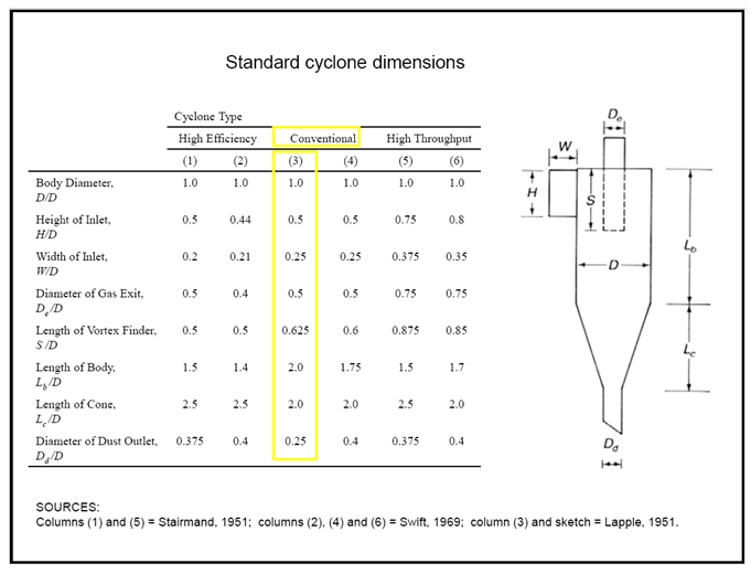 Stairmand는 2개의 표준 설계를 제시하였고, 하나는 high efficiency이고, 다른 하나는 high throughput이다.