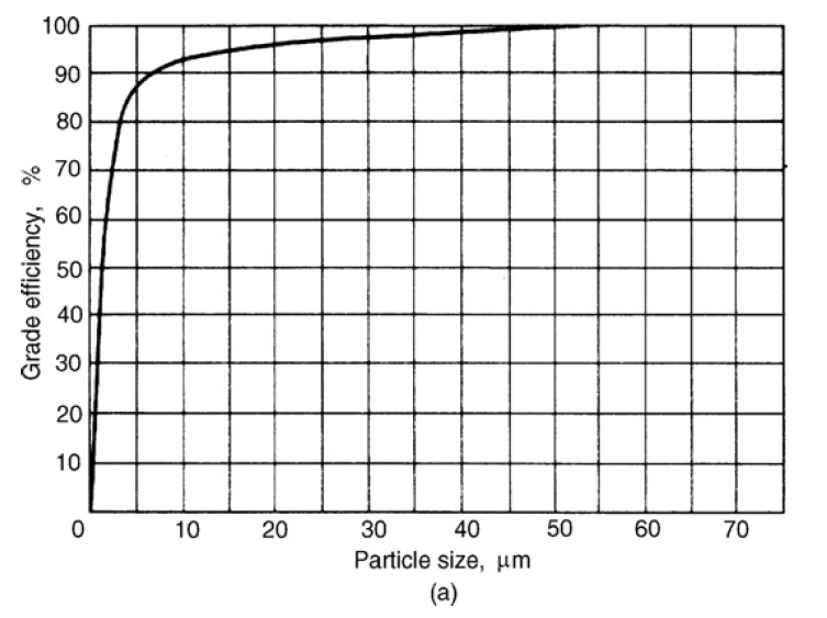 주어진 분리효율에 대해 scaling equation을 이용하여 다른 cyclone 크기나 운전조건으로 위 curve는 변형될 수 있다.