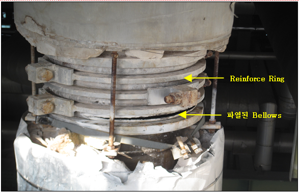 2020년 3월 ○○○사업장의 NCC공장 압축공정의 분해가스 압축기의 3단 토출부 신축이음 (Expansion Joint, 20")이 파단되어 에틸렌, 프로필렌 등을 포함한 다량의 납사(Naphtha) 분해가스가 누출되어 대규모의 폭발 · 화재가 발생한 사고이다.압축 공정 개요사고 발생 후 신축이음 타이로드형 신축이음(Tie-Rod Expansion Joint)신축이음은 증기나 가열된 가스와 같은 고온 물질을 전달하거나 배관의 움직임과 진동을 흡수하기 위해 배관에 설치하는 배관자재의 한 종류이며, 사고가 발생한 신축이음은 신축이음 양쪽 끝에 벨로우즈가 하나씩 총 2개소가 설치되어 있다. 신축이음의 주요 구성품인 벨로우즈는 몇 개의 주름으로 이루어져 있고 각 주름 사이에는 벨로우즈의 강도 향..